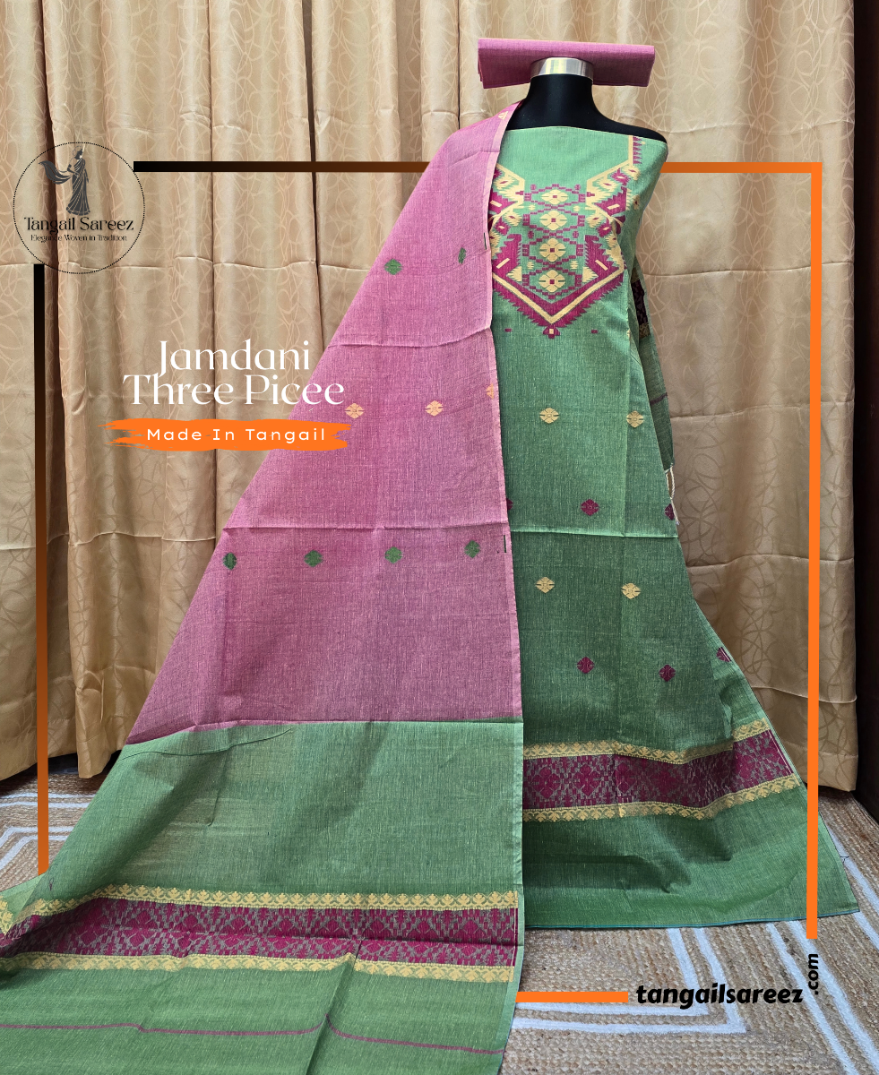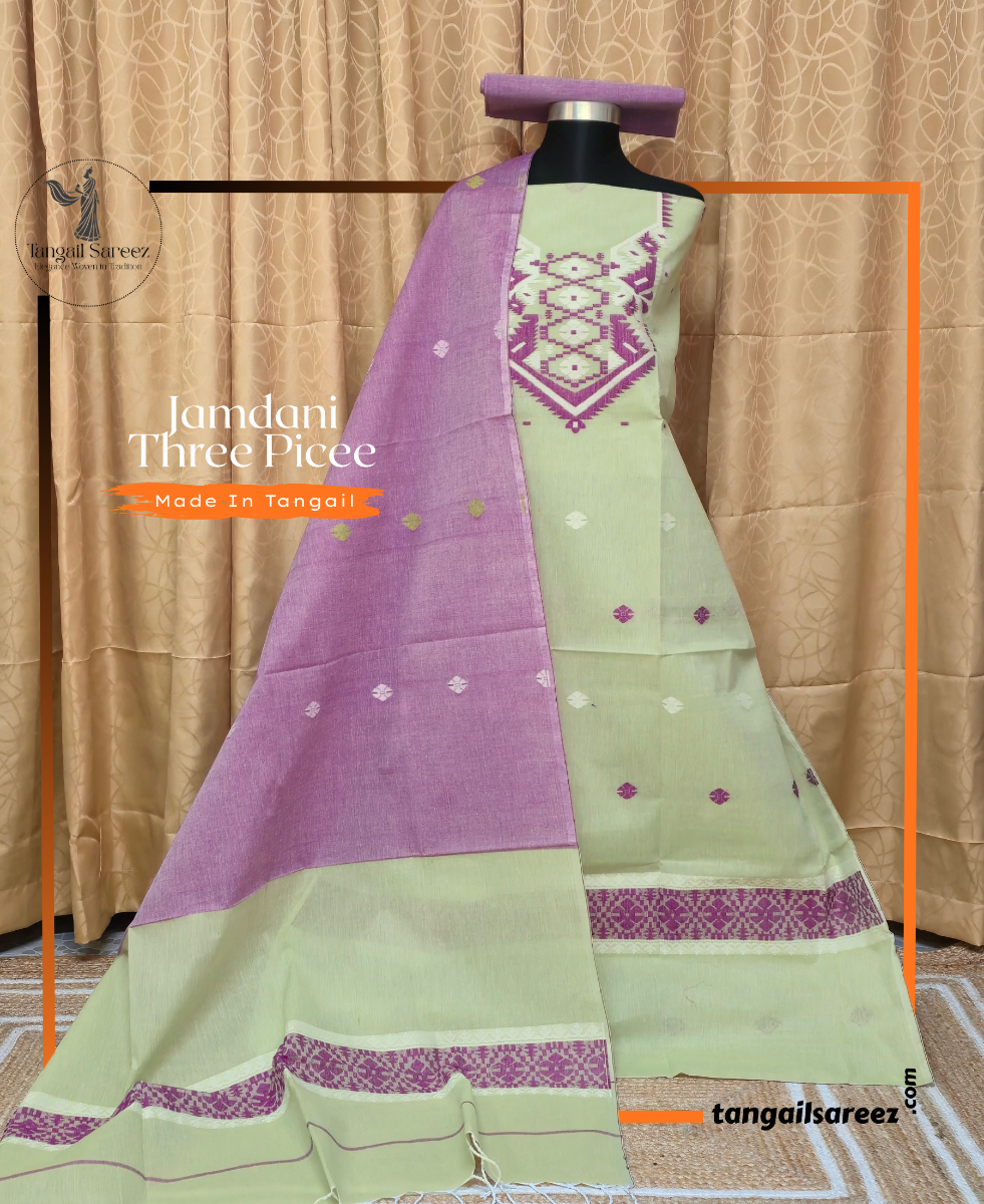 Premium Cotton Jamdani Three Piece (Unstitched)