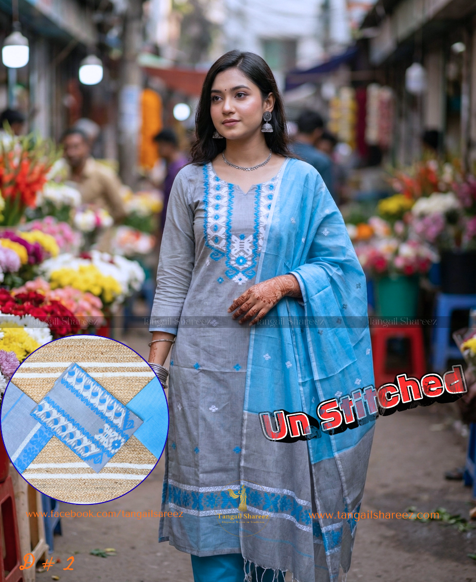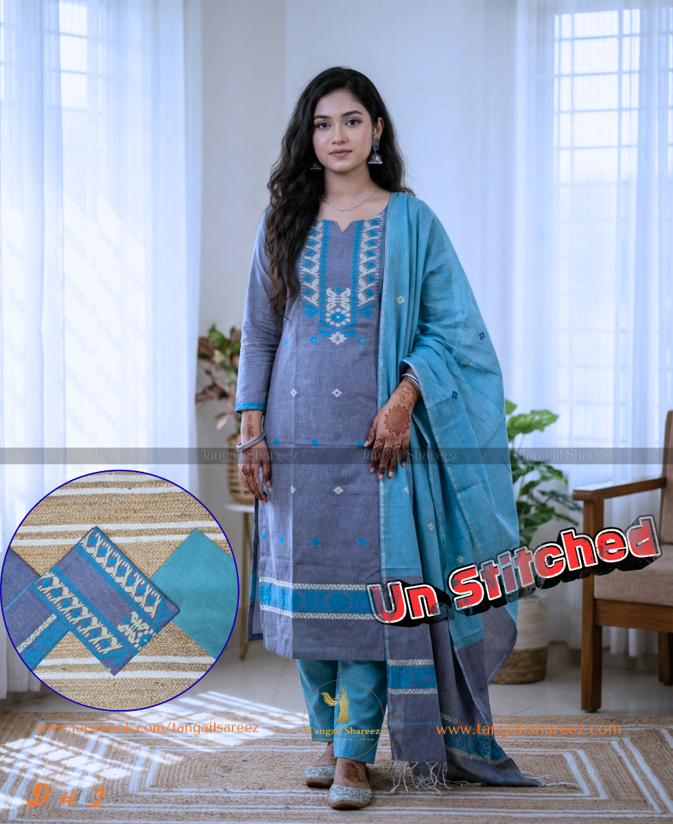 Premium Cotton Jamdani Three Piece (Unstitched)