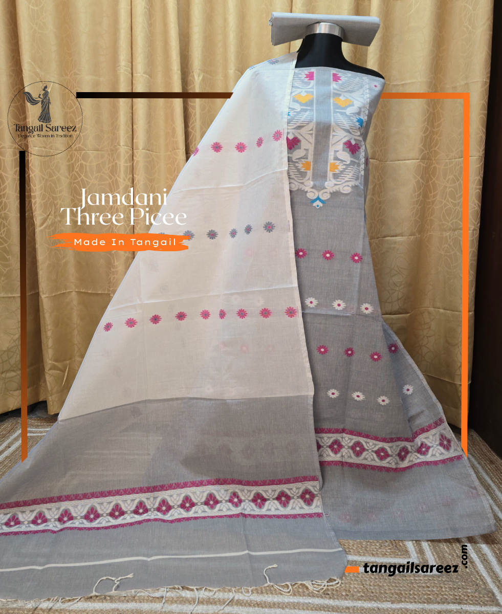 Premium Cotton Jamdani Three Piece (Unstitched)