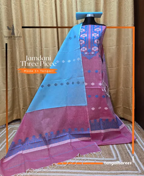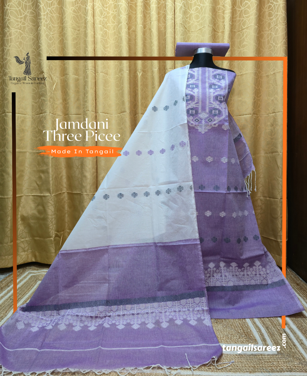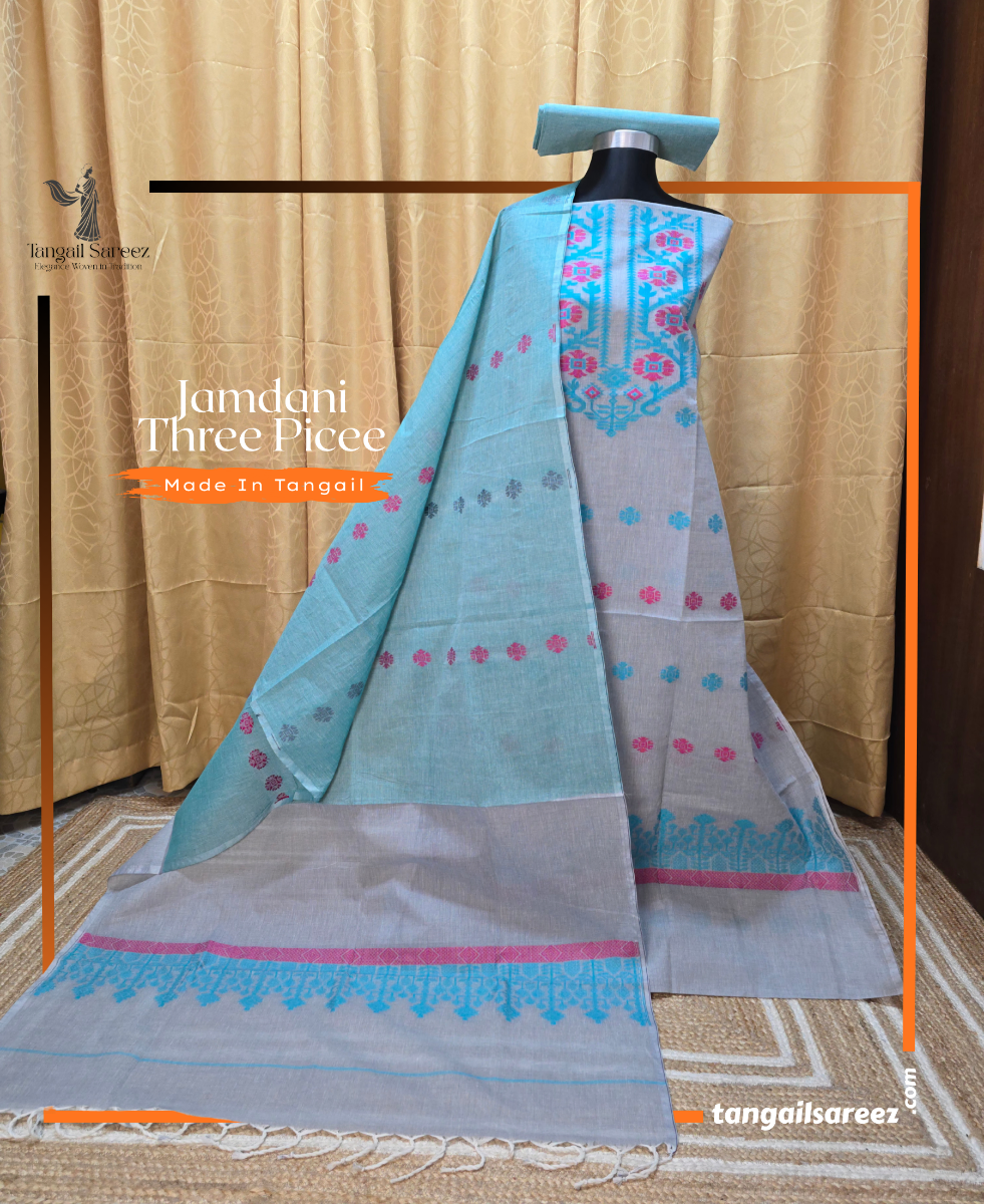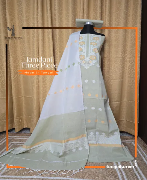 Premium Cotton Jamdani Three Piece (Unstitched)