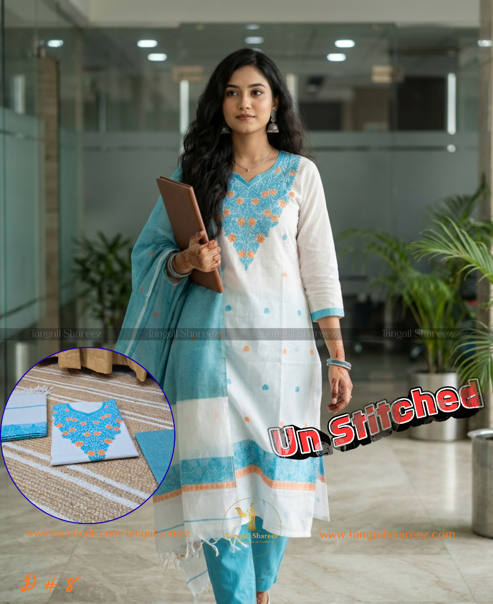 Premium Cotton Jamdani Three Piece (Unstitched)